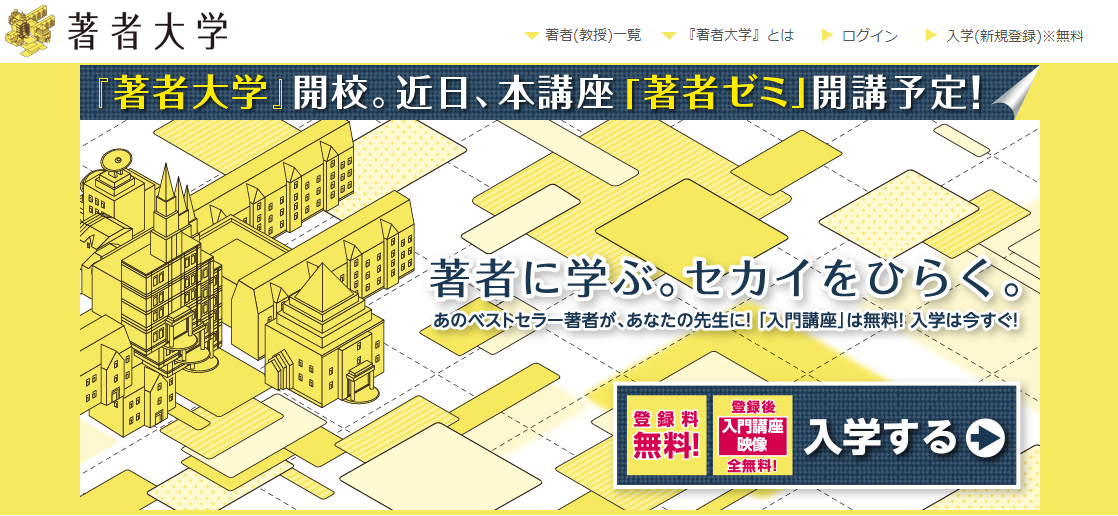 【サービス概要】 ◆サービス名 :著者大学 ◆利用料金 :無料 ◆URL :http://authoruniv.com