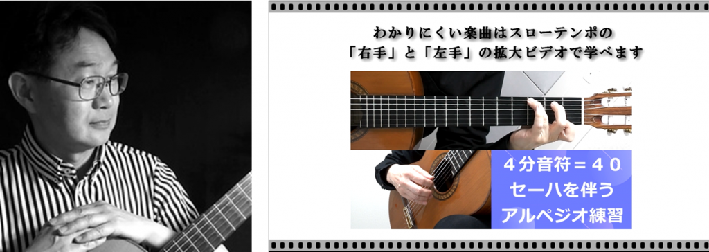 クラシックギター演奏者を対象にした、毎日の練習法に関する動画講座です。スケール・アルペジオ・和音・スラーなどのテクニックの習得に最適な内容です。