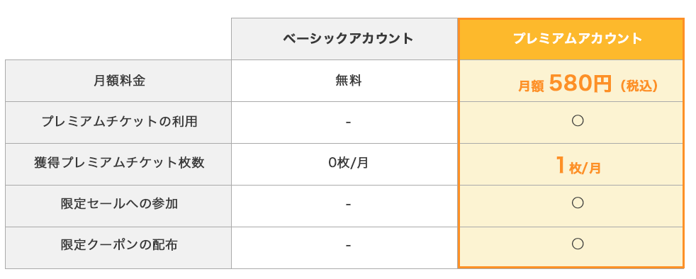 「プレミアムアカウント」では、特定のコースを1講座無料で受講できるプレミアムチケットを毎月1枚獲得することができるとともに、限定セールへの招待など、お得にオンライン講座を受講できる特典を利用できます。
